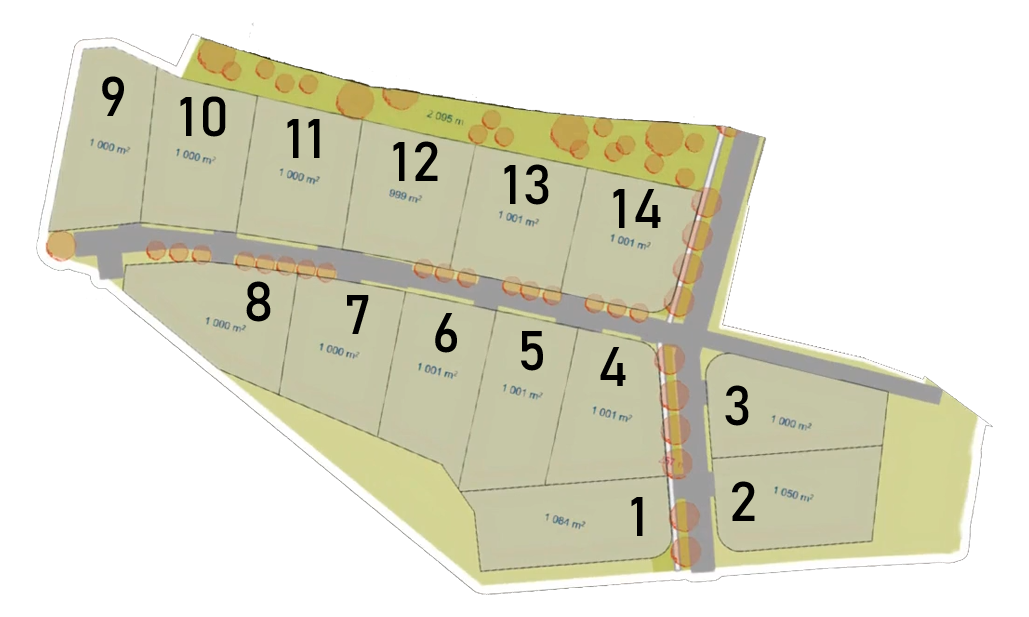 | Pozemek 14 | 1001 m2 | 6.706.700 Kč | v rezervaci |